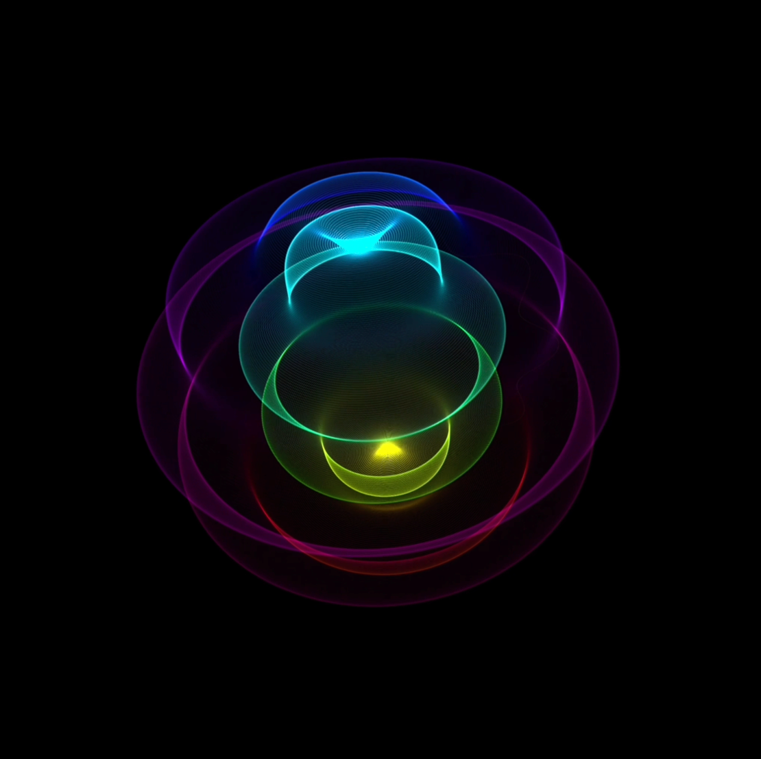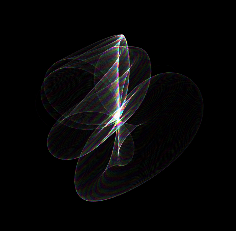 Each piece is generated in real time through algorithmic processes — playing with color, light, and movement to reveal unexpected forms.