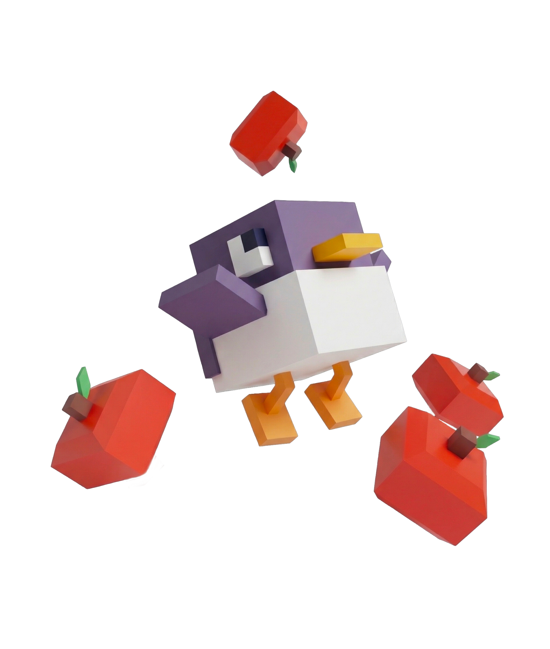 A small voxel-style 3D game prototype created in 3 days using Blender + Three.js. A penguin a little too obsessed with apples…