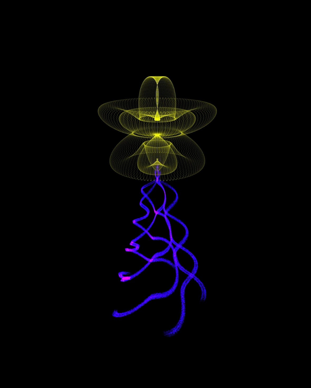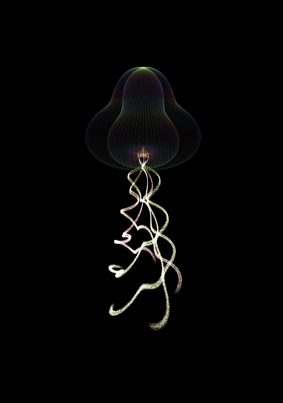 Each reload spawns a new creature — unique in its shape, color, and motion where code becomes an ocean and every particle breathes differently. Each jellyfish is born once — and never again.