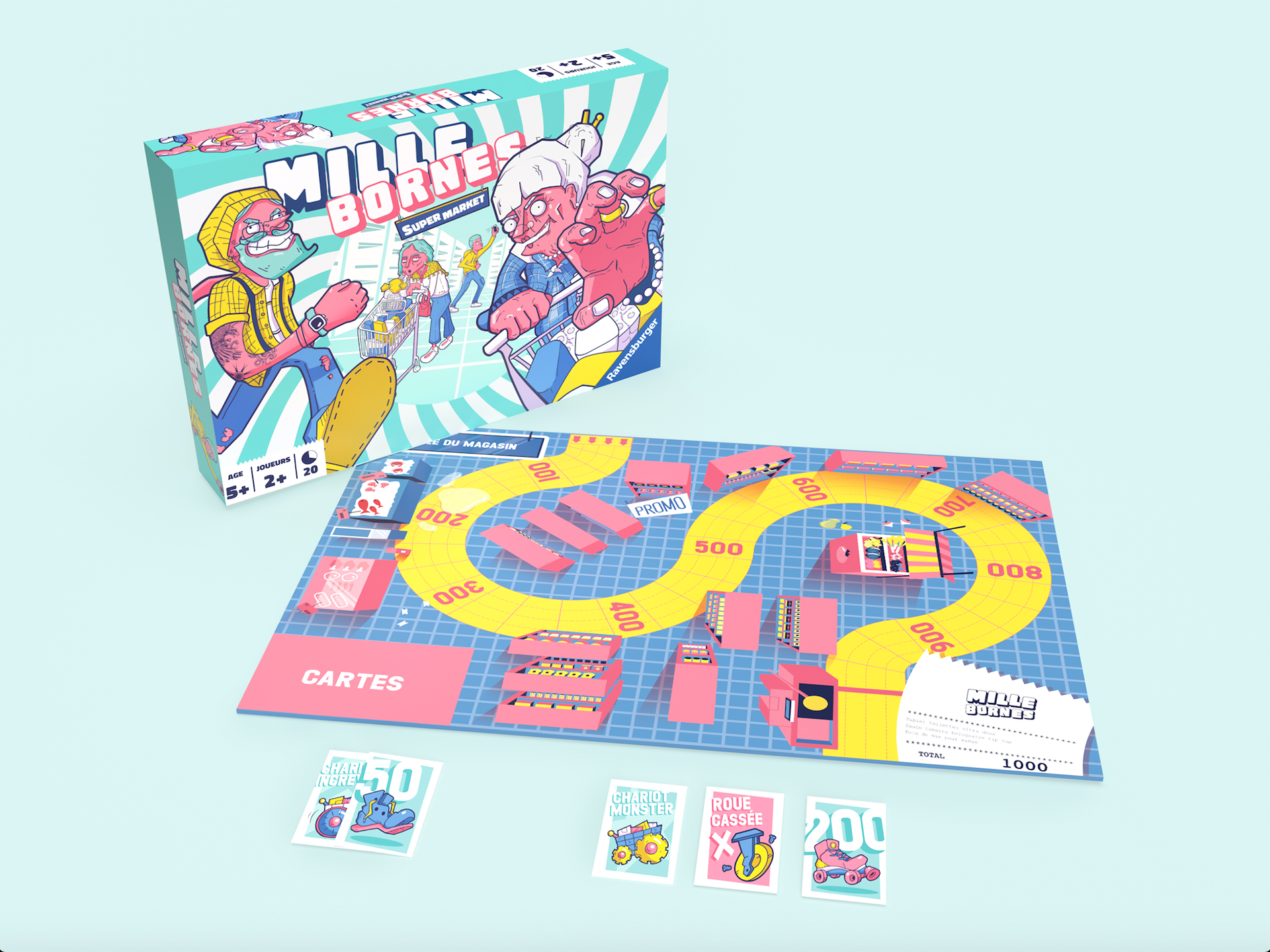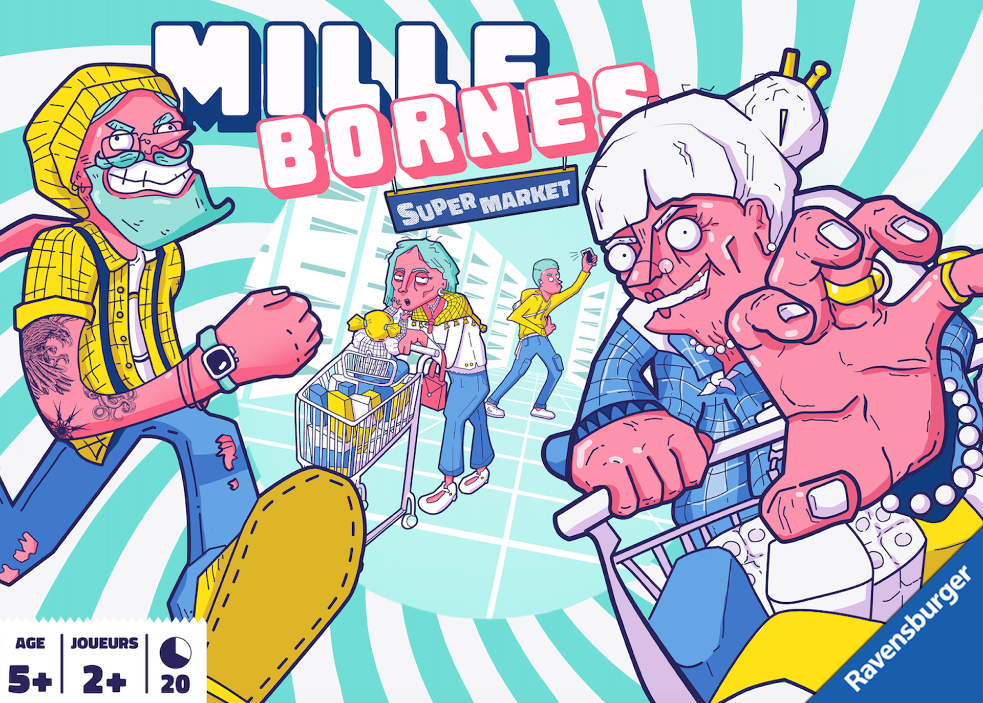 A playful reinterpretation of the classic road game, transformed into a chaotic supermarket race. The box visual features bold, dynamic graphics inspired by shopping aisles, creating an energetic and colorful design that immediately catches the eye.